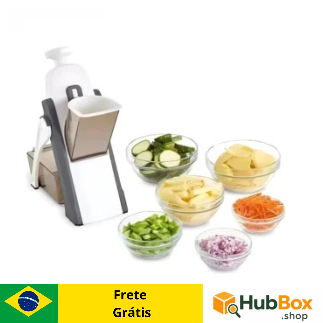 O sistema de molas garante cortes mais leves e uniformes, enquanto o ajuste de espessura de 0,5 a 8 mm oferece total liberdade para preparar legumes, frutas e vegetais exatamente como a receita pede. Tudo com mais organização, menos esforço e muito mais praticidade no dia a dia.