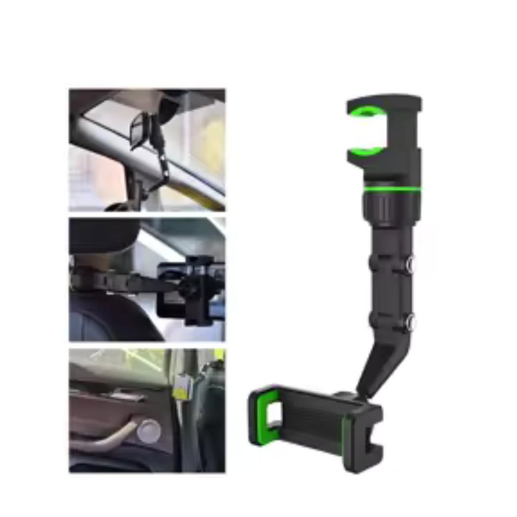 Seu design multifuncional permite o uso em diferentes cenários: no espelho retrovisor do carro, no banco traseiro ou até mesmo em outros ambientes, como cozinha ou superfícies compatíveis. O sistema de rotação avançado oferece total liberdade de ajuste, permitindo alternar entre posição horizontal e vertical conforme a necessidade.