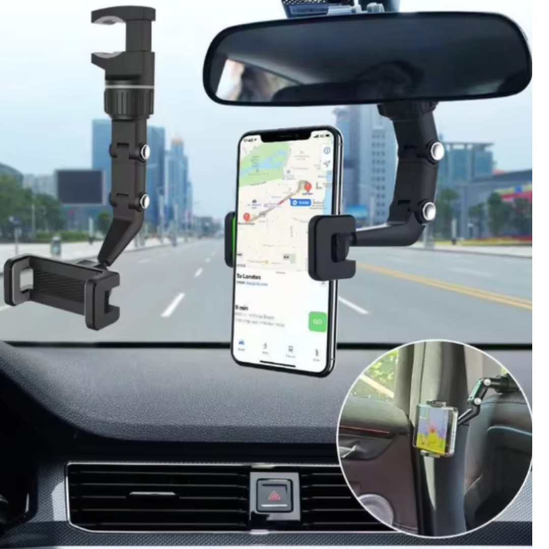 Suporte de Celular para Espelho Retrovisor — ajuste 360°, firme e multifunciona